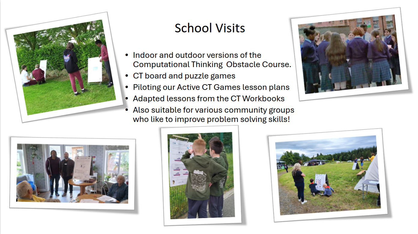 We offer FREE half-day and day-long on-site school visits, funded through Research Ireland. Our visits include running Computational Thinking Obstacle Course or other Active CT Games. A typical school visit would include a 45 minute CT activity for each of four different classes of ~30 students. We tailor our activities by age group for both primary and secondary schools. At the end of the school visit we can also offer CT training for your school's teaching staff.